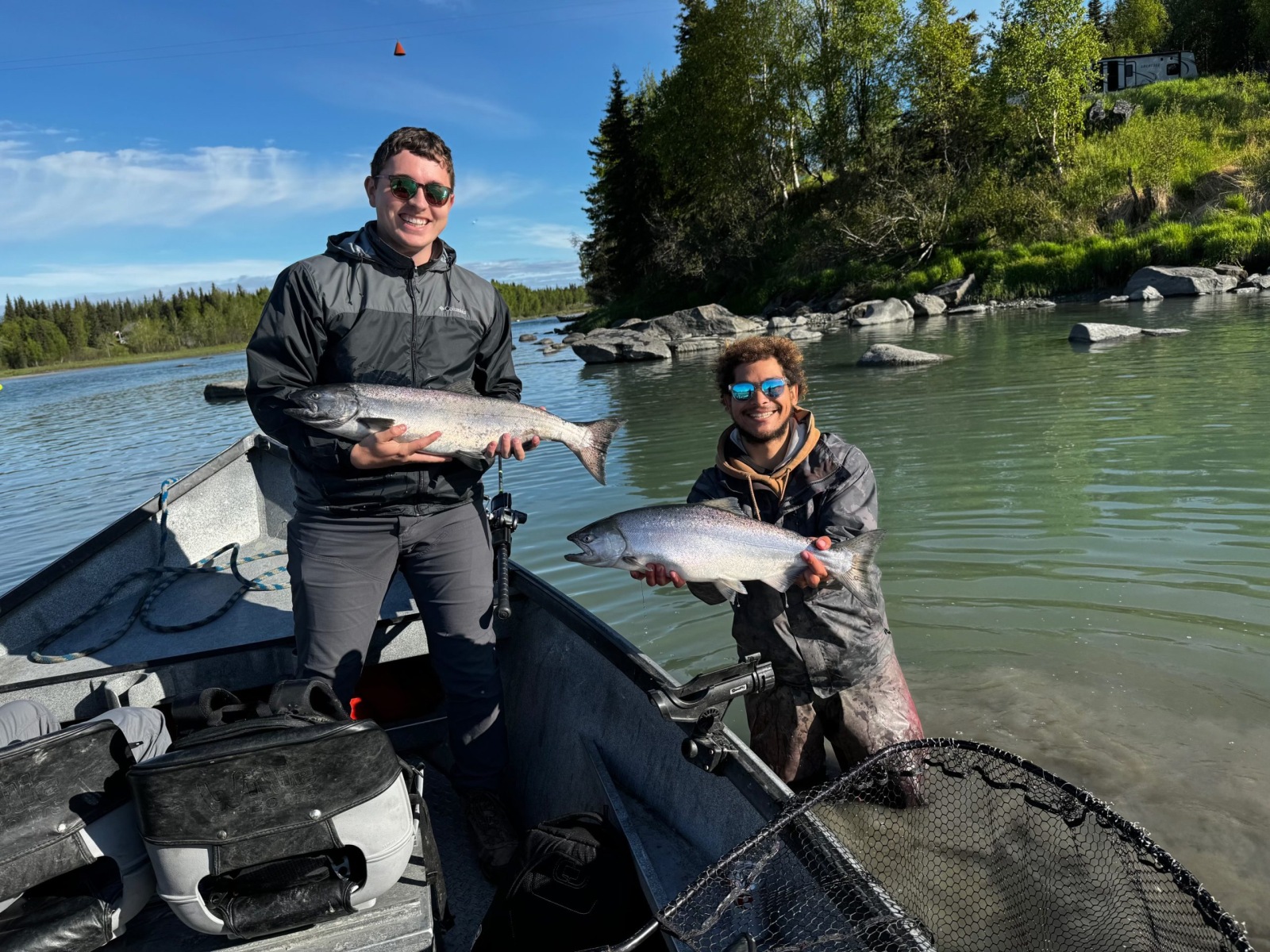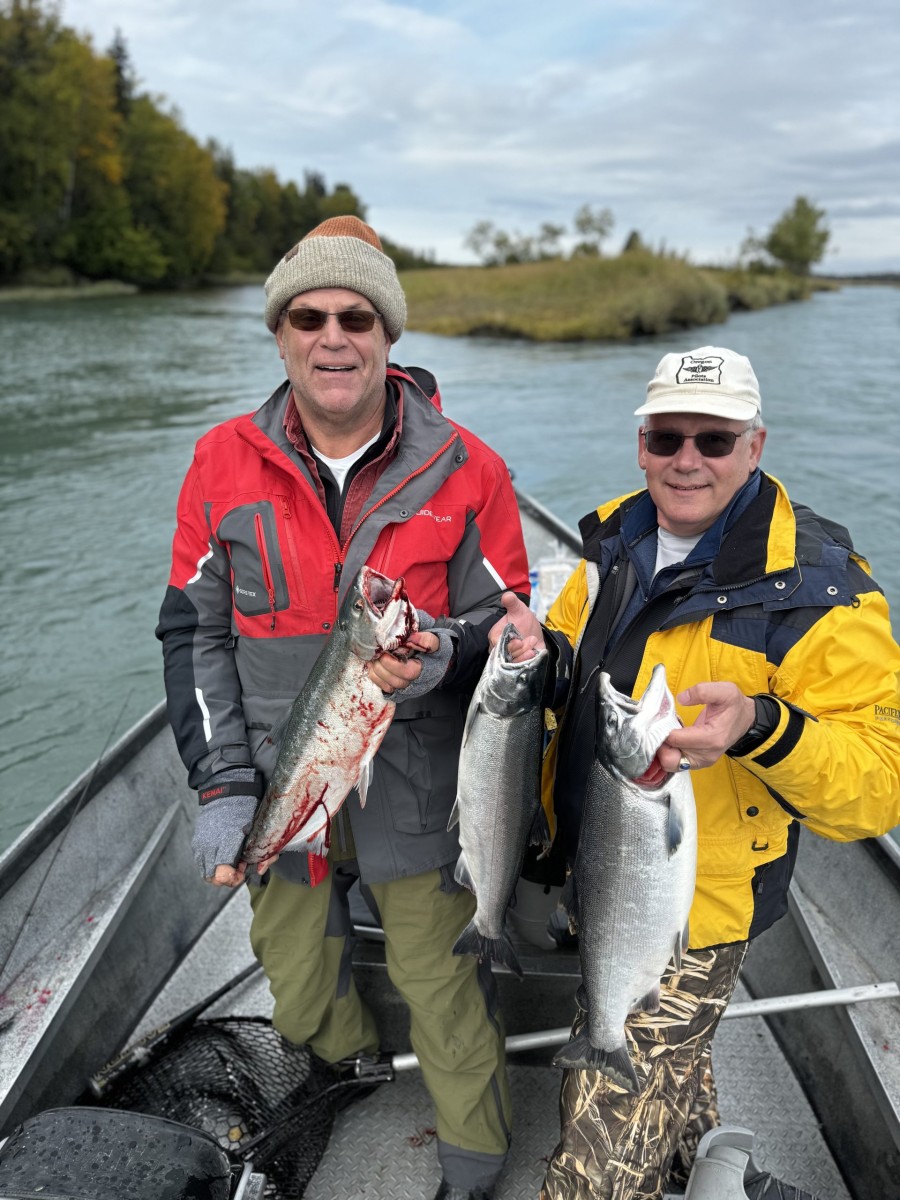 We provide premium river fishing guide services that are designed with your fishing experience in mind! Our boats are eco-friendly and roomy for an enjoyable Kenai, Alaska fishing adventure! Come join us for World-Class fishing on the Kenai & Kasilof Rivers. Depending on the season anglers can fish for Kenai king salmon, silver salmon, or sockeye salmon. We also have multi-day fishing trips available if you wish to go halibut fishing. Our Kenai fishing guide service specializes in creating incredible vacation experiences in one of Earth’s last wild frontiers. In 2024 our clients landed over 2,750 salmon on both the Kasilof River and Kenai River!